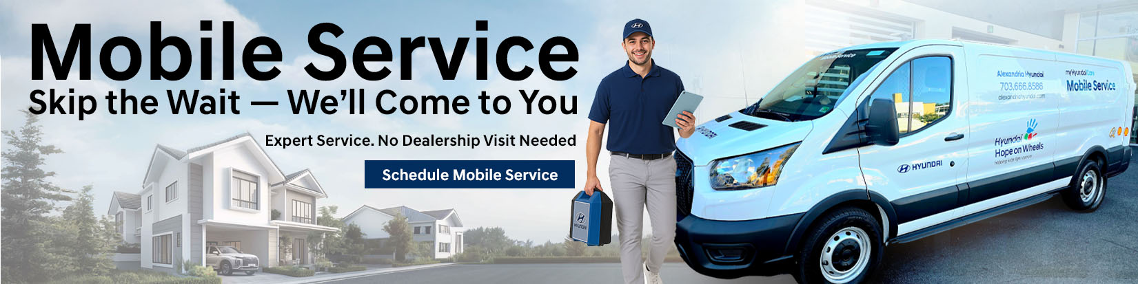 At Alexandria Hyundai, we know your time is valuable-and your Hyundai deserves to be cared for by certified professionals who know it best. That's why we're pleased to offer Hyundai Mobile Service: convenient, reliable maintenance and light repair services brought directly to your home, office, or wherever your day finds you.